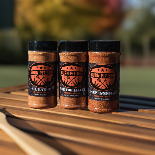 Burn Pit BBQ 3-Pack Gift Box, Memphis Style BBQ Rub, Fire For Effect Sweet Heat Rub, and All Ration All-Purpose BBQ Seasoning, 3 Count Variety Pack